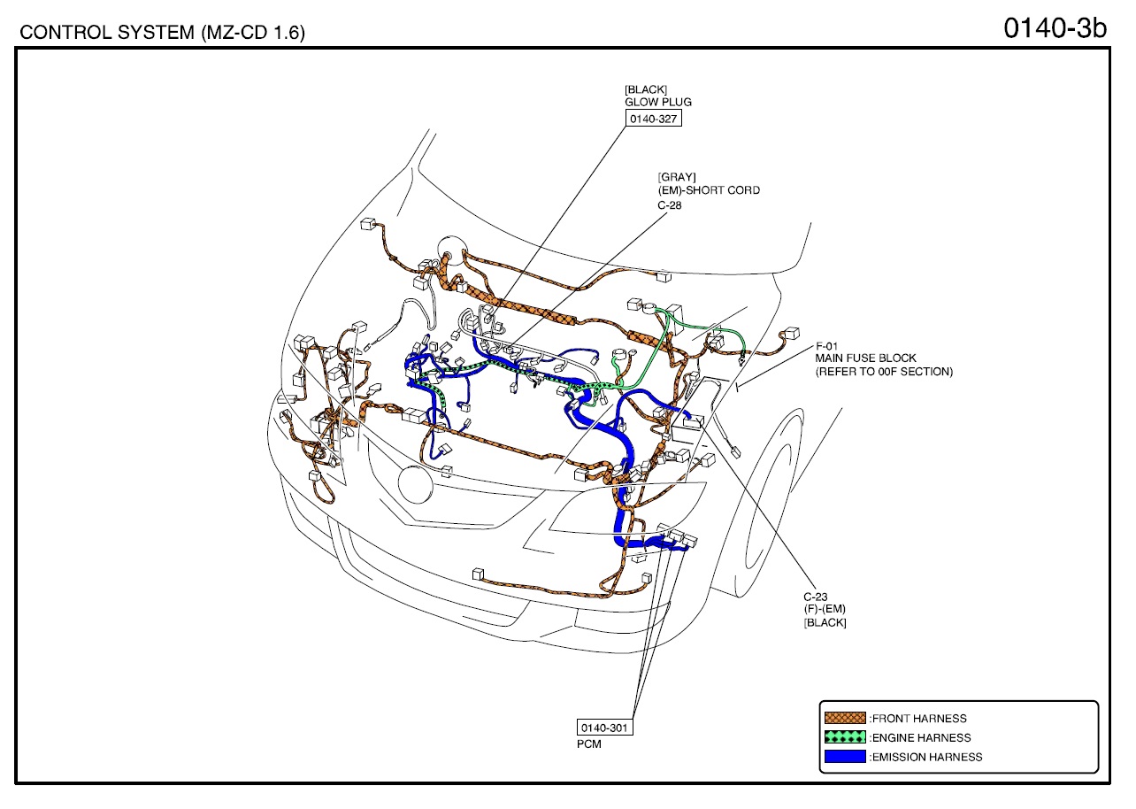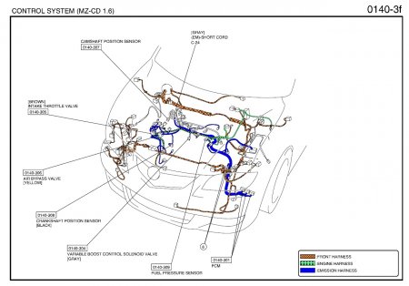 Электрические схемы подключения блока управления двигателем Mazda 3 (двигатель MZ-CD 1.6).