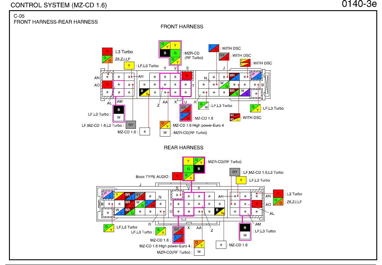 Электросхема подключения ЭБУ Mazda 3 (LF)