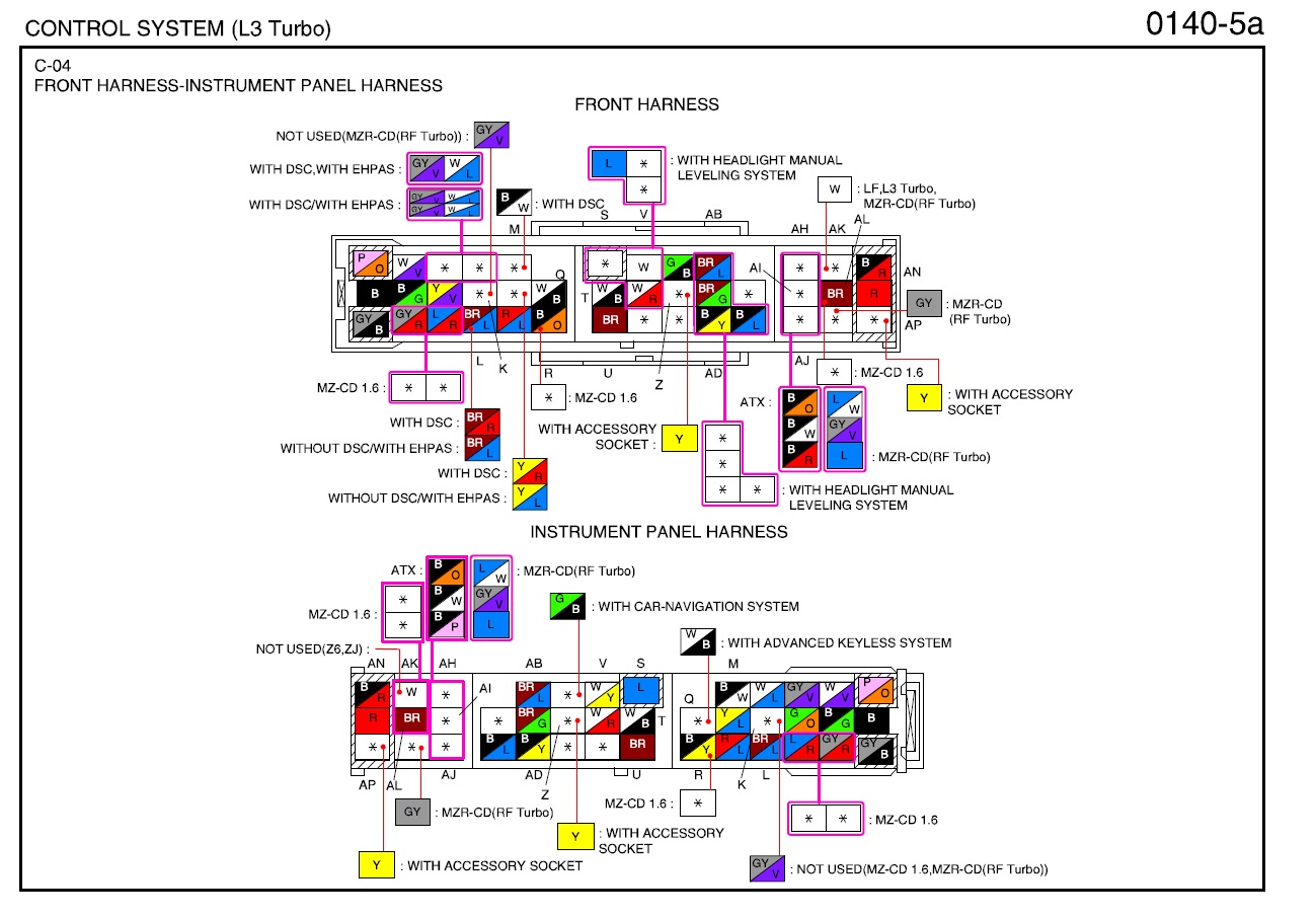 Электросхема подключения ЭБУ Mazda 3 (LF)
